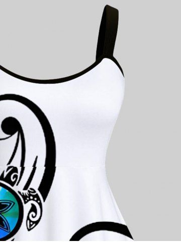 Plus Size Curve Flower Turtle Sea Waves Print Hawaii A Line Tank Dress