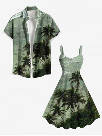 Robe Ligne A Arbre Noix de Coco et Océan Imprimés de Grande Taille - Vert - Vert