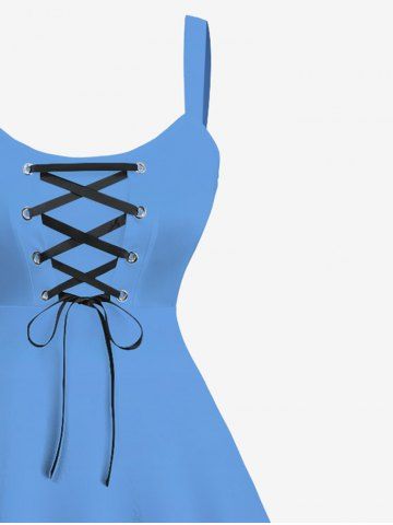 Robe Ligne A Ciel et Noix de Coco Imprimés de Grande Taille à Lacets - Bleu Ciel - Bleu Ciel