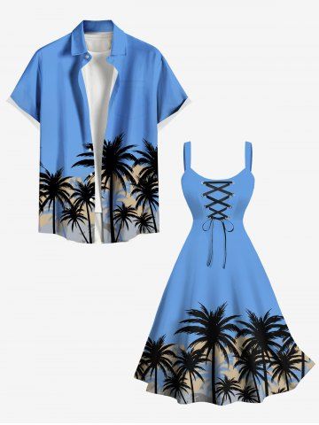 Robe Ligne A Ciel et Noix de Coco Imprimés de Grande Taille à Lacets - Bleu Ciel - Bleu Ciel
