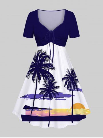 Robes Graphiques > Robe Ligne A Ciel Nuage et Soleil Imprimés de Grande Taille