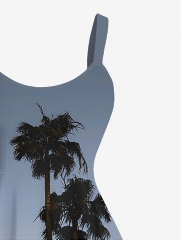 Robe Ligne A Ciel Ombré Arbre de Noix de Coco Imprimés de Grande Taille - Bleu Clair - Bleu Clair