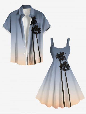 Robes Graphiques > Robe Ligne A Ciel Ombré Arbre de Noix de Coco Imprimés de Grande Taille