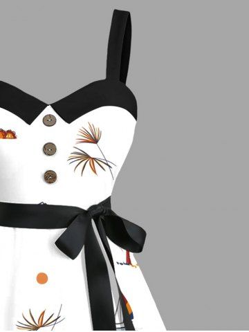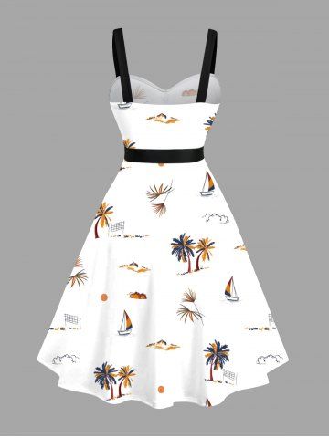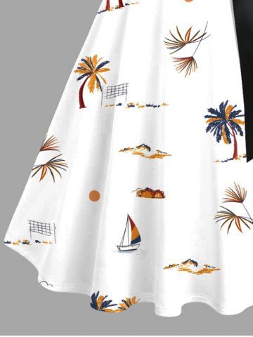 Robe Ligne A Cocotier et Soleil Imprimés de Grande Taille à Col Relevé avec Ceinture - Blanc - Blanc