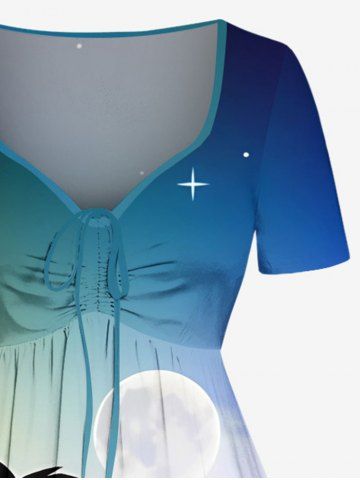 Robes Graphiques > Robe Ligne A Colorée Lune et Arbre Noix de Coco Imprimés de Grande Taille
