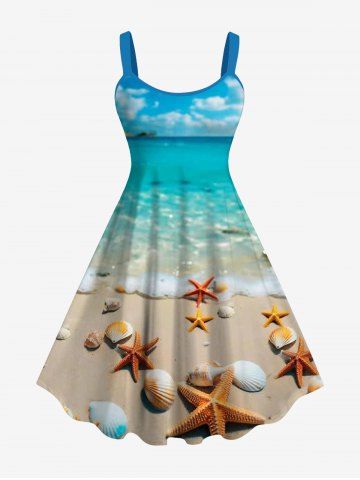 Robes Graphiques > Robe Débardeur Hawaïen Ligne A Coquille D'Océan Imprimé de Grande Taille