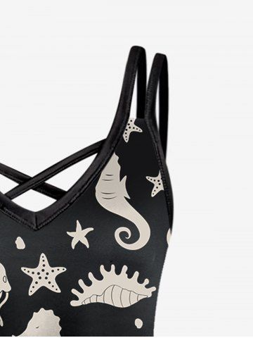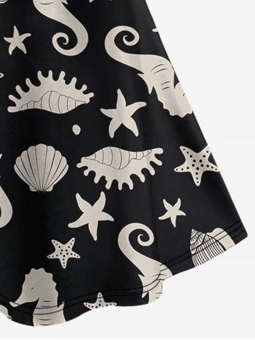 Robe Ligne A Croisé Marine Imprimée de Grande Taille - Noir - Noir