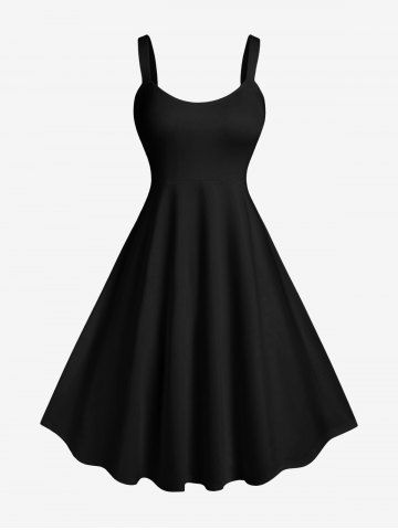 Robe Ligne A en Couleur Unie de Grande Taille - Noir - Noir