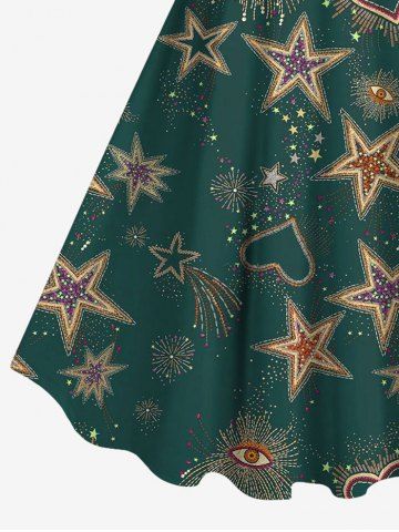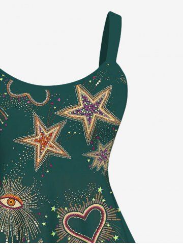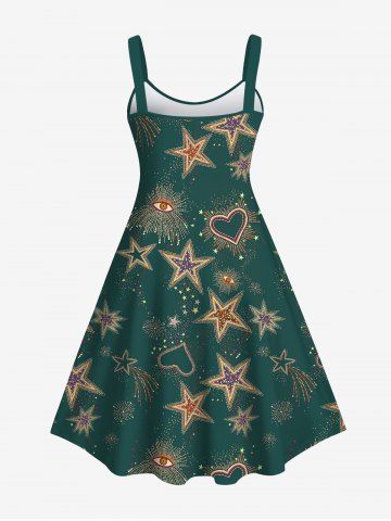 Robe Ligne A Etoile Cœur Feu D'Artificiel Imprimé sans Dos de Grande Taille - Vert - Vert