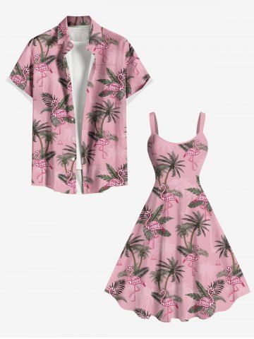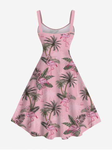 Robe Ligne A Flamant et Feuille Tropicale Imprimés de Grande Taille - Rose Clair - Rose Léger