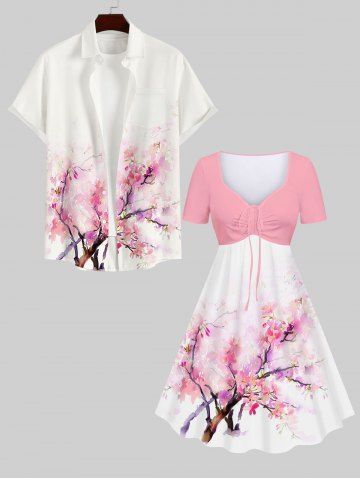 k*****e5Watercolor Peach Blossom Print Cinched Dress and Buttons Pocket Shirt Plus Size Matching Hawaii Beach Outfit for CouplesColor: LIGHT PINKdress is lovely fit just right husband like the matching shirt as well
