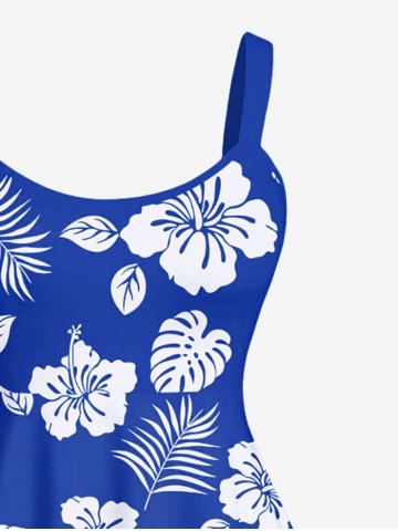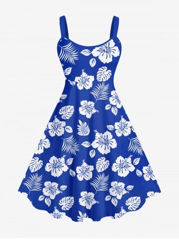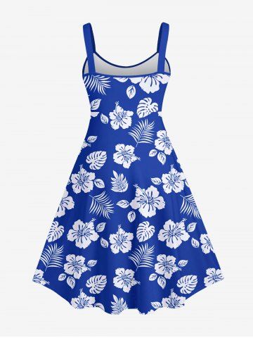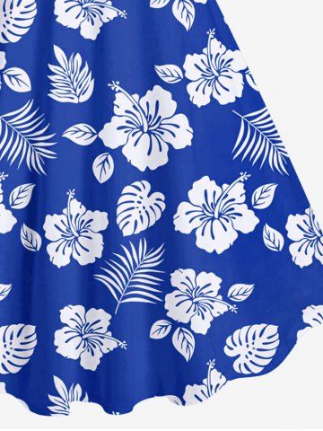 Robe Ligne A Fleur et Noix de Coco Imprimés sans Dos de Grande Taille - Bleu - Bleu