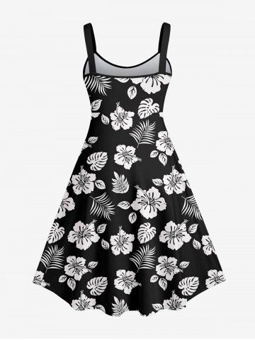Robe Ligne A Fleur et Noix de Coco Imprimés sans Dos de Grande Taille - Noir - Noir