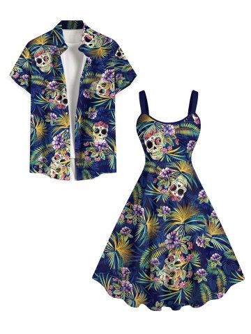 V*****a5Skulls Coconut Tree Leaf Flower Print Backless Dress and Button Shirt Plus Size Matching Hawaii Beach Outfit for CouplesColor: DEEP BLUELove the fit we wore them to two different events a got tons of compliments. People were surprised where we purchased them from and how affordable the price is. We will definitely order again