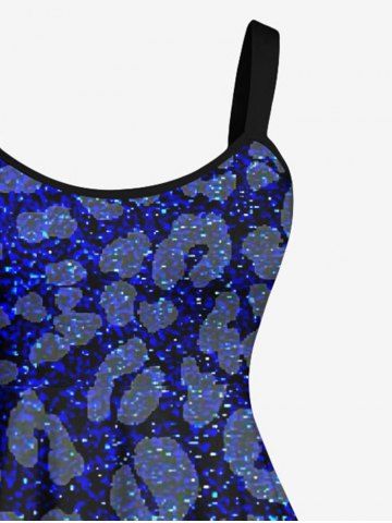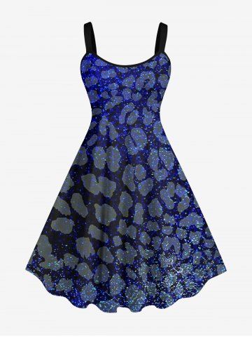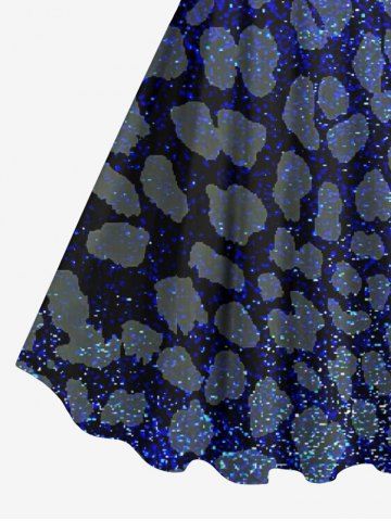 Robe Ligne A Galaxie Léopard Imprimé en Blocs de Couleurs de Grande Taille à Paillettes - Bleu - Bleu