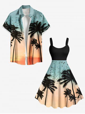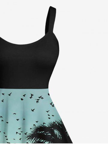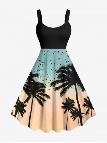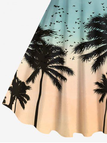 Robes Graphiques > Robe Ligne A Hawaïen Ombrée Oiseau et Noix de Coco Imprimés de Grande Taille