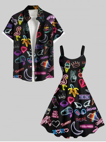 Robe Ligne A Néon Banane Lune Etoile et Flamant Imprimés de Grande Taille à Paillettes - Noir - Noir
