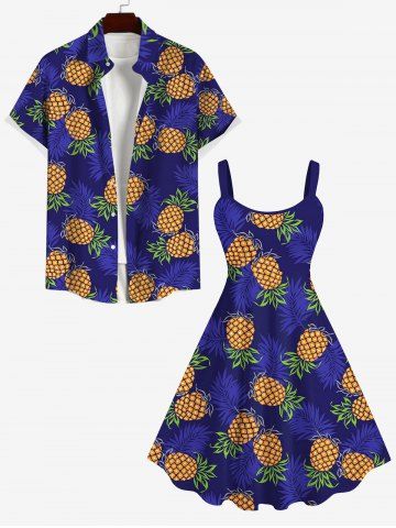 Robes Graphiques > Robe Ligne A Nouée Feuille D'Ananas et Noix de Coco Imprimés de Grande Taille