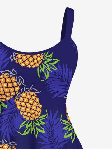 Robe Ligne A Nouée Feuille D'Ananas et Noix de Coco Imprimés de Grande Taille - Bleu - Bleu