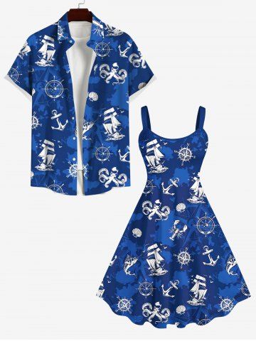 e*****a5Sailboat Compass Anchor Octopus Cruise Print Plus Size Matching Beach Dress Shirt Outfit For CouplesColor: BLUEUsed it for my cruise loves it