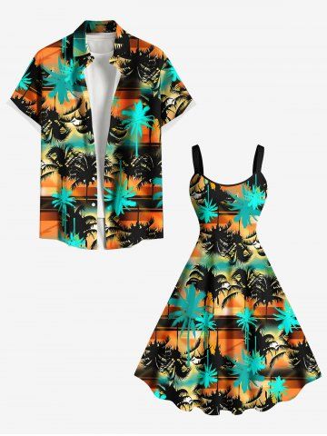 Robes Graphiques > Robe Ligne A Ombre Cocotier Imprimé de Grande Taille Au Crépuscule