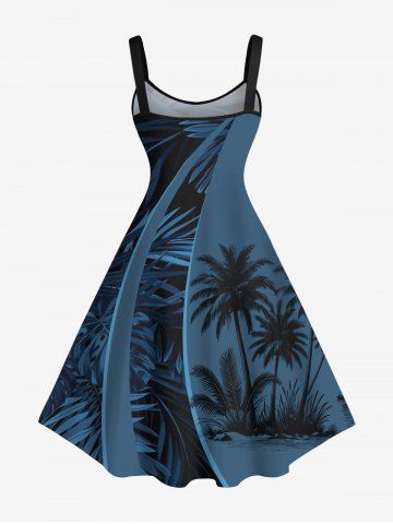 Robe Ligne A Ombre Cocotier Imprimé de Grande Taille - Bleu De Minuit - 4x