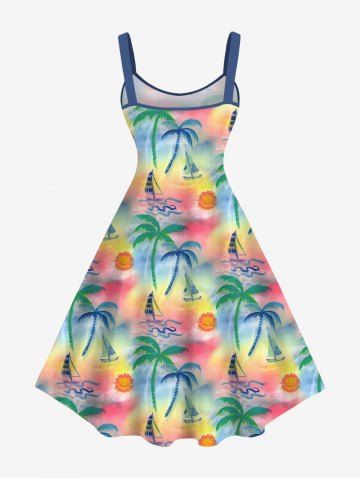 Robes Graphiques > Robe Ligne A Ombrée Cocotier et Soleil Imprimés de Grande Taille