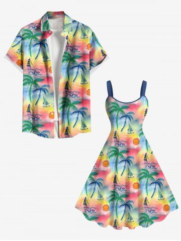 Robes Graphiques > Robe Ligne A Ombrée Cocotier et Soleil Imprimés de Grande Taille