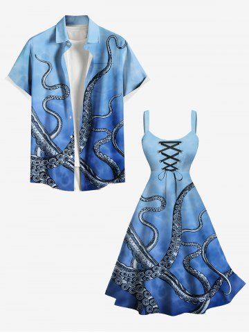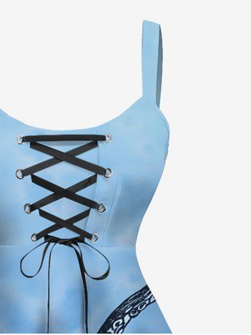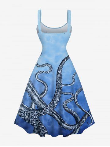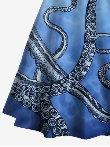 Robe Ligne A Pieuvre Ombrée Imprimés de Grande Taille à Lacets - Bleu - Bleu