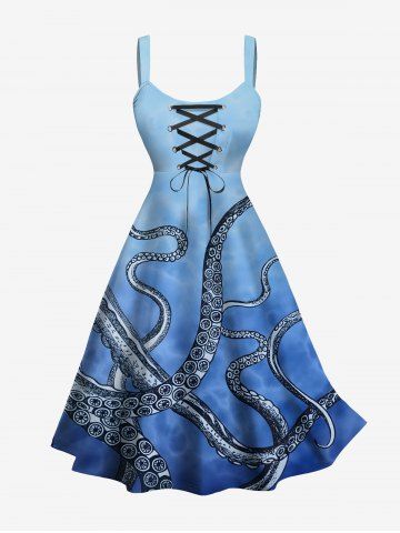 Robes Graphiques > Robe Ligne A Pieuvre Ombrée Imprimés de Grande Taille à Lacets