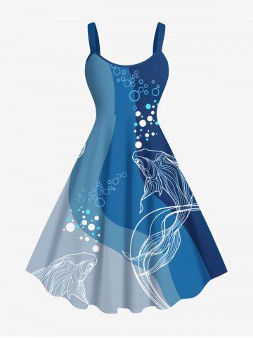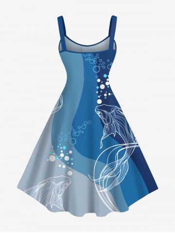 Robe Ligne A Poisson Imprimé en Blocs de Couleurs de Grande Taille - Bleu - Bleu