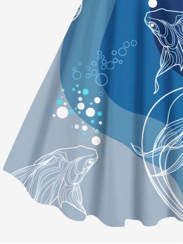 Robe Ligne A Poisson Imprimé en Blocs de Couleurs de Grande Taille - Bleu - Bleu
