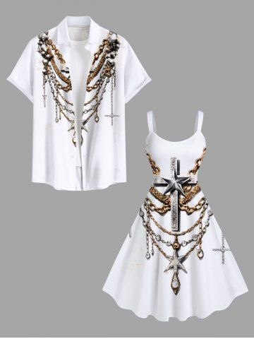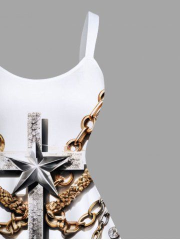 M*****y5Plus Size Metallic Layered Chain Tassel Star Cross Print A Line DressColor: WHITE Size: 5XSo comfy! And sleek