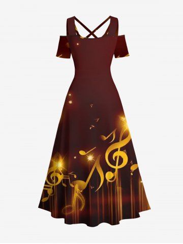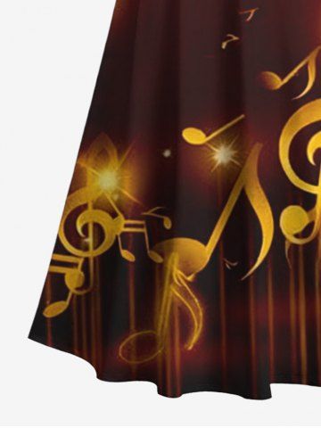 Robes Graphiques > Robe longue grande taille à imprimé étoiles et paillettes avec symboles musicaux, épaules dénudées et bretelles croisées, coupe trapèze