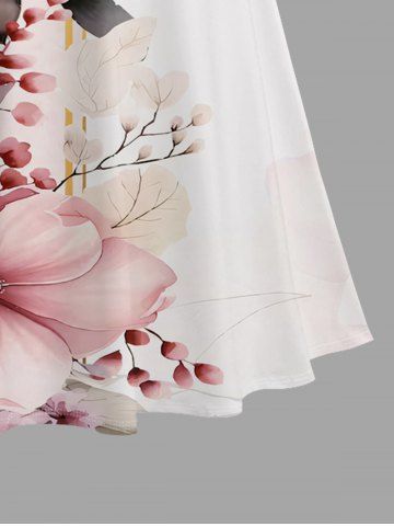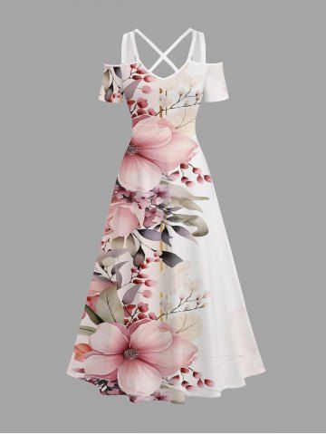 Robes Graphiques > Robe longue hawaïenne à imprimé floral et feuilles grande taille, épaules dénudées et croisée