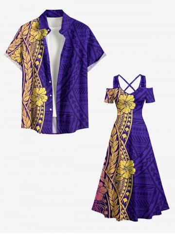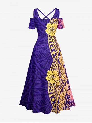 Robe longue hawaïenne à imprimé floral tropical et épaules dénudées, grande taille, style ethnique, épaules croisées. - Concorde - L