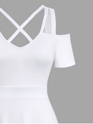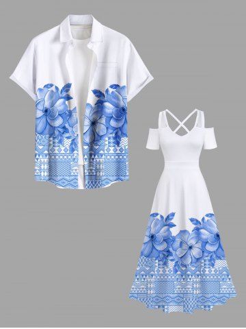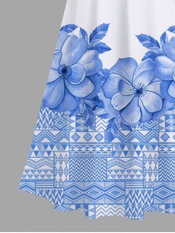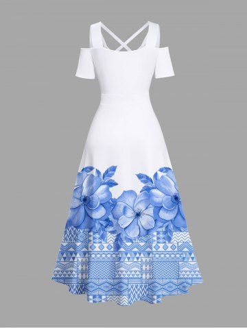 Robe longue hawaïenne grande taille à imprimé feuilles et fleurs tropicales, épaules dénudées et croisées - Blanc - Blanc