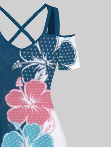 Robe longue trapèze à imprimé floral contrasté et blocs de couleurs, style hawaïen, grande taille - Multi-a - L