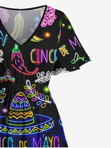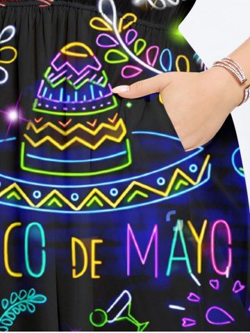 Robe Mi-longue en Paille de Grande Taille Imprimée de Crâne et Fleurs - Noir - Noir