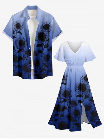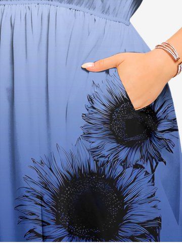 Robe mi-longue fendue à imprimé tournesols ombré grande taille style hawaïenne - Bleu Profond - 1x