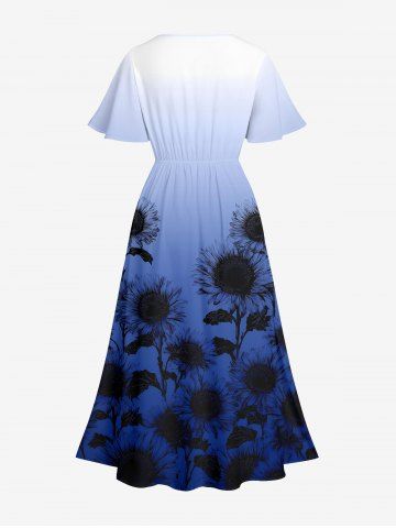 Robe mi-longue fendue à imprimé tournesols ombré grande taille style hawaïenne - Bleu Profond - 2x