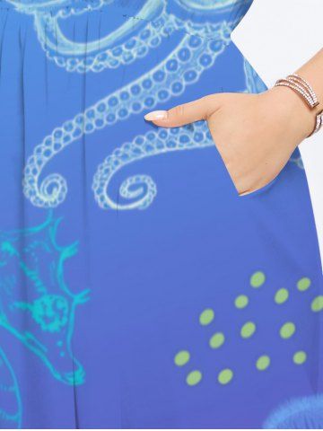 Robes Graphiques > Robe Mi-Longue Fendue Cousue Ligne A Fleurie Etoile de Mer de Grande Taille avec Poche