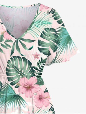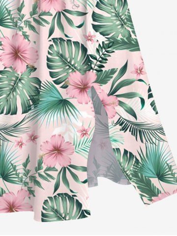 Robe Mi-Longue Fendue Fleur D'Hibiscus et Feuille Tropicale Imprimées de Grande Taille - Multi-a - 2x