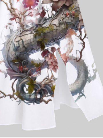 Robe Mi-Longue Fendue Fleur Dragon Chinois de Grande Taille - Blanc - Blanc