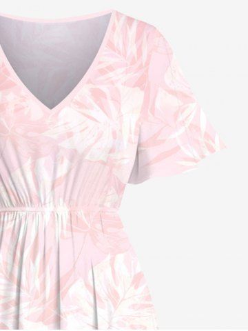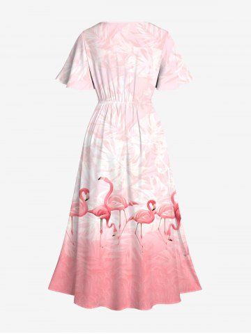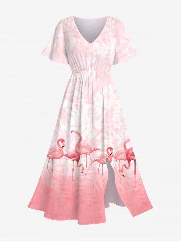 Robe mi-longue fendue hawaïenne à imprimé flamant rose tropical et feuilles ombrées, grande taille - Rose Clair - Rose Léger