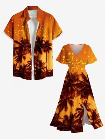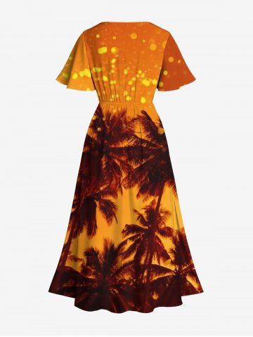 Robes Graphiques > Robe mi-longue fendue hawaïenne à imprimé ombré ciel et cocotiers grande taille