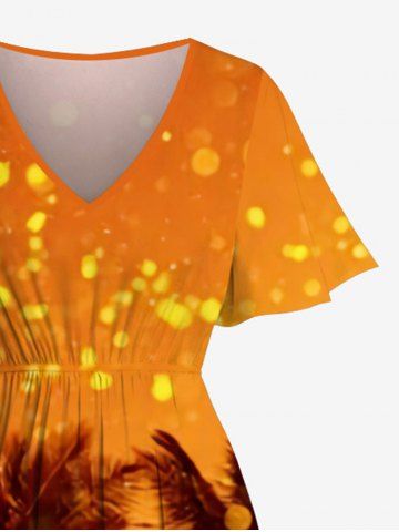 Robe mi-longue fendue hawaïenne à imprimé ombré ciel et cocotiers grande taille - Orange - Orange