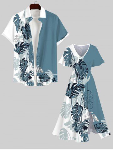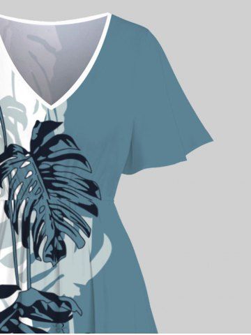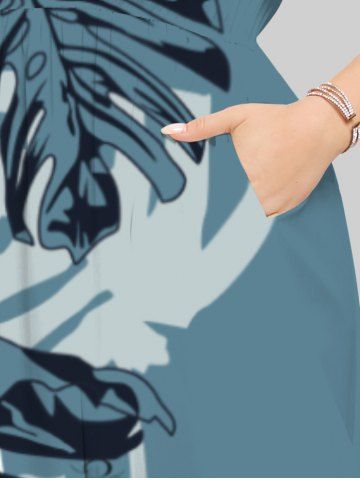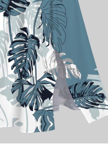 Robes Graphiques > Robe Mi-Longue Hawaïen Fendue Feuille Tropicale en Blocs de Couleurs de Grande Taille