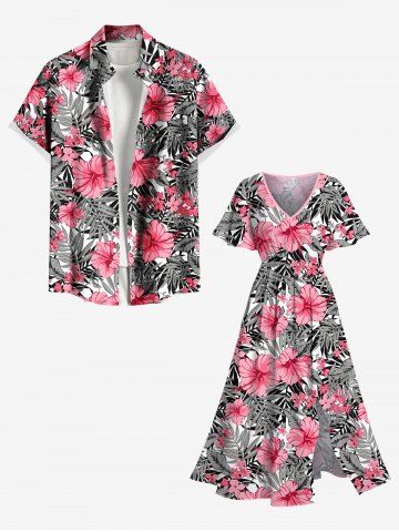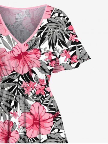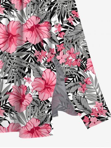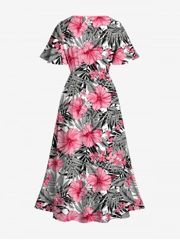 Robe Mi-Longue Hawaïen Fendue Fleur et Feuille Tropicale Imprimées de Grande Taille - Rose Clair - Rose Léger