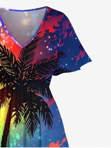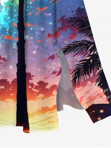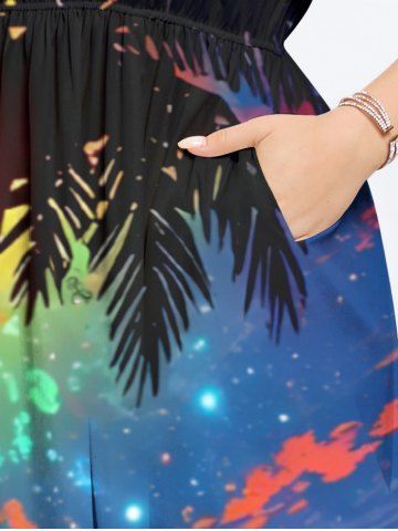Robes Graphiques > Robe Mi-Longue Hawaïen Ligne A Boutonnée Colorée Arbre de Noix de Coco Imprimé de Grande Taille avec Poche